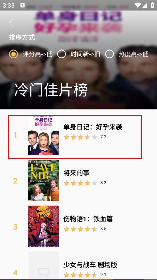 2、在影片榜單頁(yè)面,點(diǎn)擊單身日記:好孕來(lái)襲,進(jìn)入影片詳情頁(yè)。