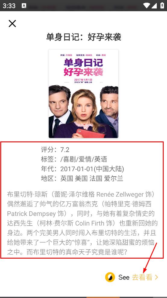 3、在影片詳情頁(yè),點(diǎn)擊去看看,進(jìn)入觀影偏好選擇頁(yè)面。