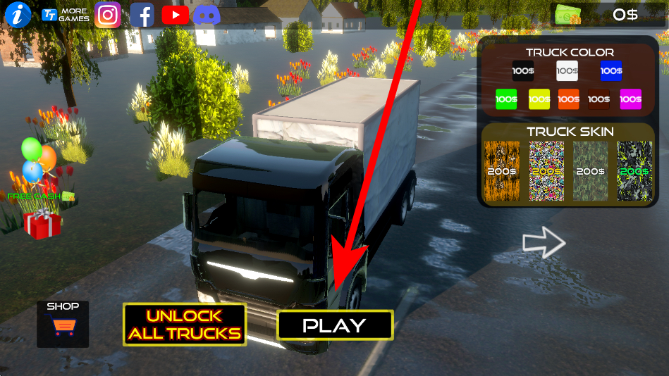 1、新手玩家體驗(yàn),首先開啟游玩,在游戲界面,點(diǎn)擊開始類按鈕,即可開啟卡車駕駛的游玩之旅,進(jìn)入到駕駛場(chǎng)景中。