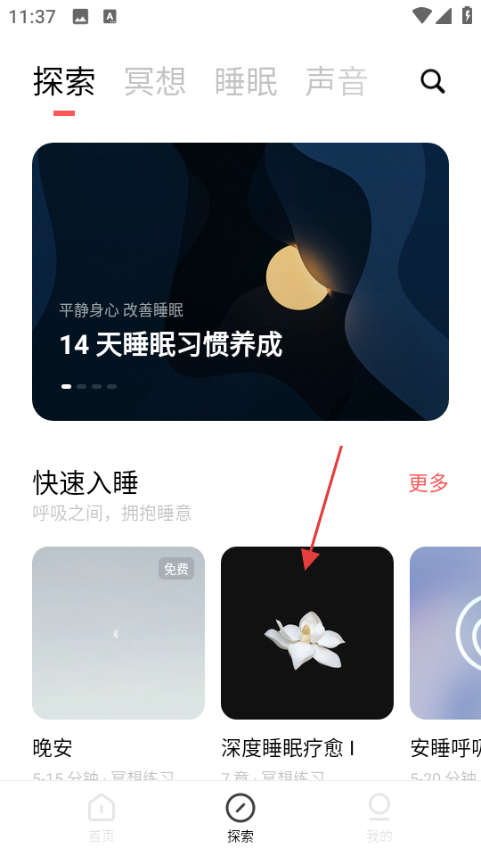 2、進(jìn)入探索頁(yè)面后,選擇深度睡眠療愈Ⅰ。