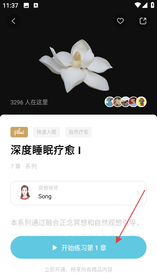 3、進(jìn)入深度睡眠療愈Ⅰ頁(yè)面,點(diǎn)擊開(kāi)始練習(xí)第1章。
