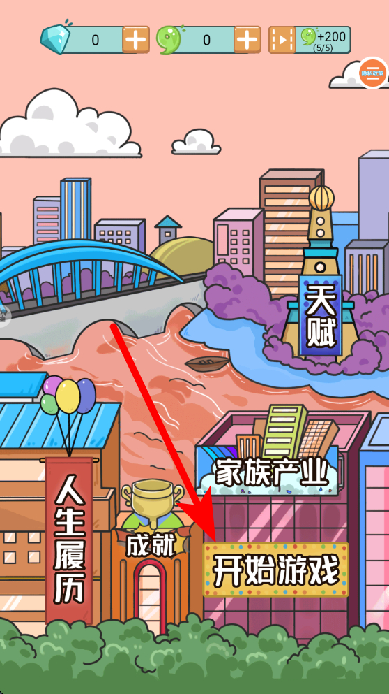 1、新手玩家在初始界面找到開始游戲,點擊后進入游戲,開啟屬于自己的中國式人生模擬,從出生等階段逐步展開人生歷程。