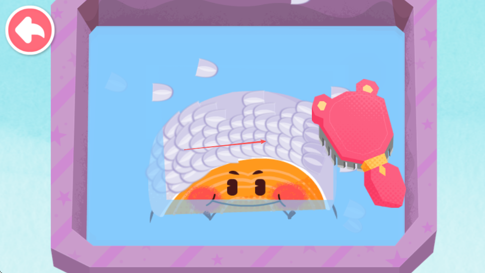 1、進入游戲,看到魚肉上的魚鱗時,點擊紅色錘子道具把魚鱗刮干凈。