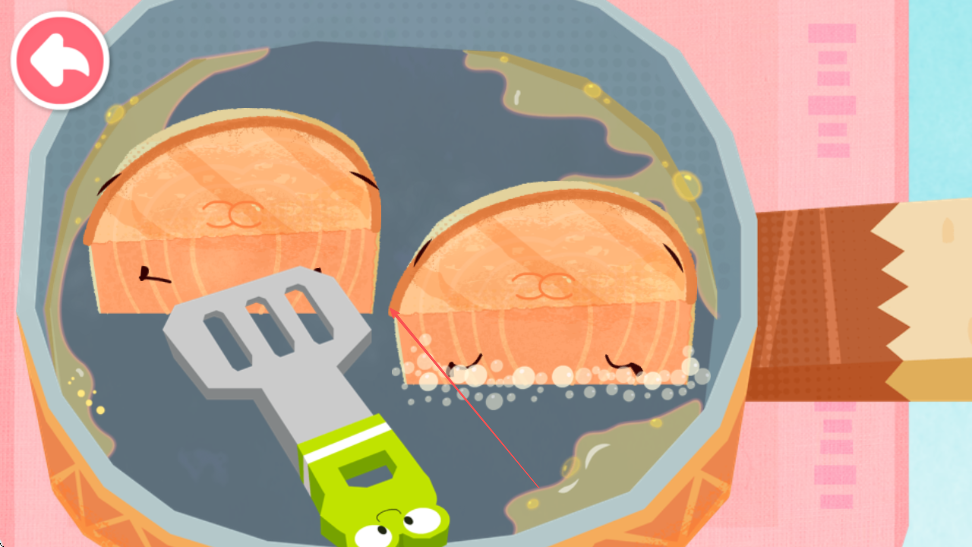 2、沉浸式認知體驗:每個食材互動環(huán)節(jié)都搭配專屬音效與動畫,比如“切”蘋果時會有清脆的音效與果肉分離的動畫,讓孩子在感官刺激中加深對食材處理過程的認知。
