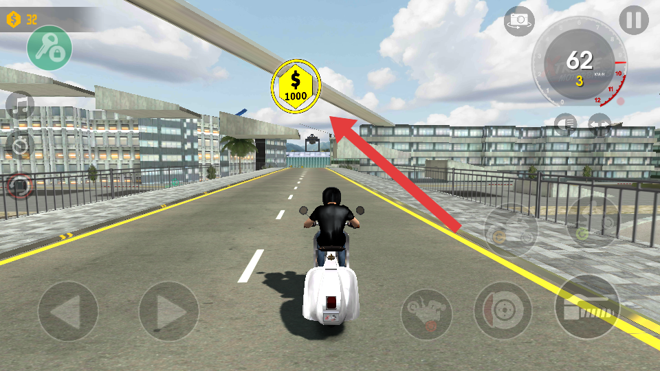 2、在行駛過(guò)程中,留意路面上標(biāo)注$1000的金錢(qián)標(biāo)識(shí),駕駛摩托車(chē)靠近并觸碰,即可收集該筆金錢(qián),積累游戲內(nèi)資源。