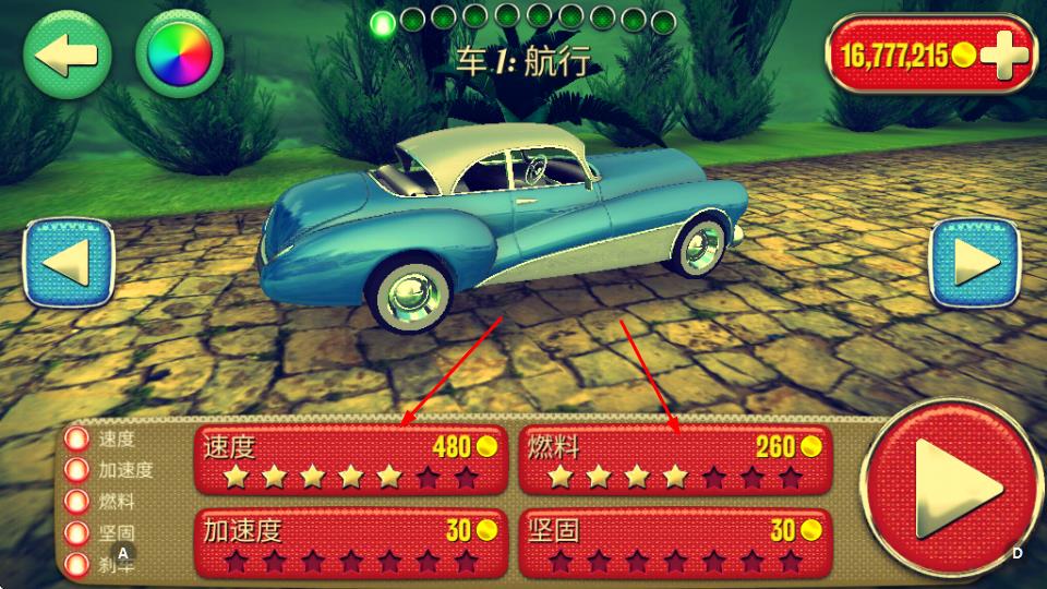 3、定制升級突破極限:使用收集的金幣解鎖車輛定制功能,升級車輛性能如油耗優(yōu)化、操控提升等,或調(diào)整外觀風(fēng)格,通過定制升級讓車輛更適配賽道,助力突破以往行駛距離。