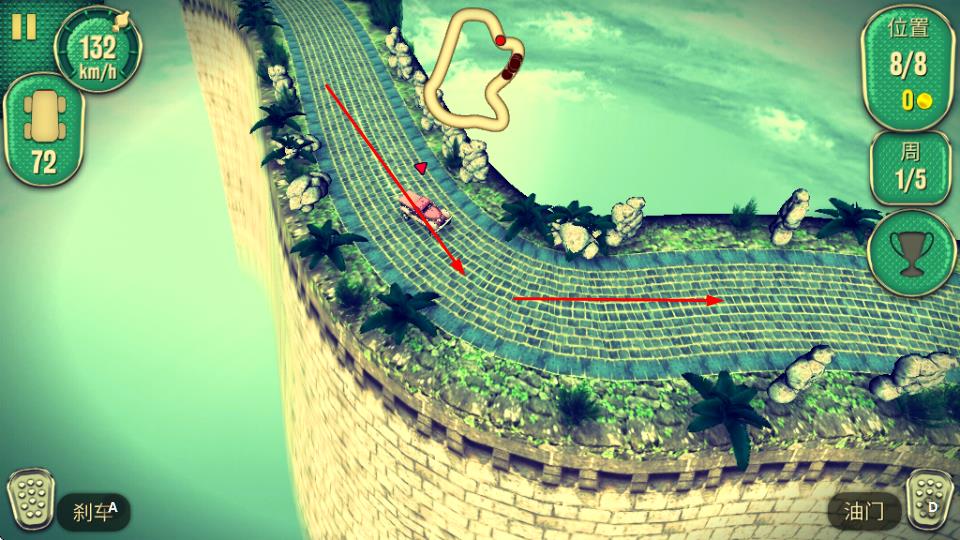 2、進入賽道后,通過油門、剎車按鈕控制車輛速度,在彎道等路段合理操作,保持車輛行駛穩(wěn)定。