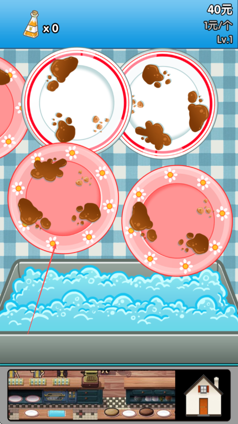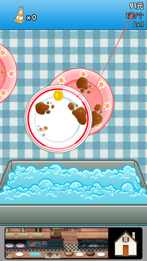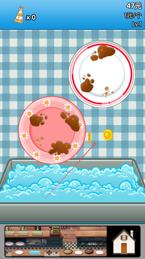 3、清洗過程中留意盤子上出現(xiàn)的金幣,收集金幣增加收入。