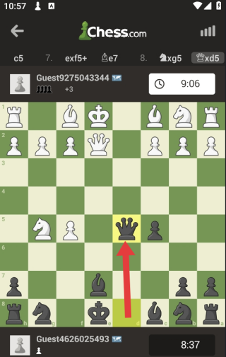 3、在合適時機,將黑方后按箭頭指向移動,利用后強大的行棋能力,威脅白方棋子或占據(jù)有利位置。