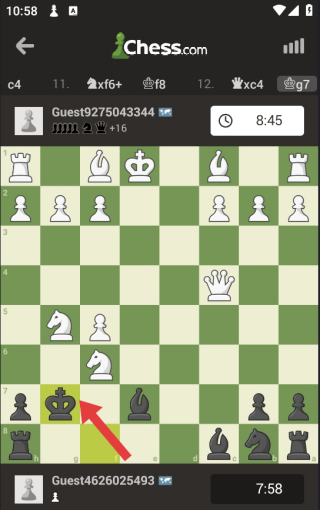 4、依據(jù)棋局發(fā)展,把黑方王按箭頭指向移動,調整王的位置,保障王的安全,同時為后續(xù)走棋策略鋪路。