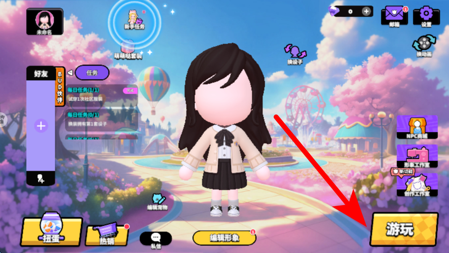 2、新手玩家體驗(yàn)進(jìn)入游玩界面需在主界面,點(diǎn)擊游玩,進(jìn)入到游玩選擇界面,為接下來挑選具體的游玩玩法做好準(zhǔn)備。