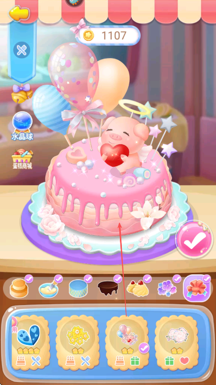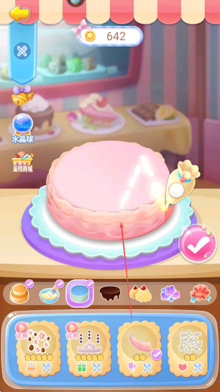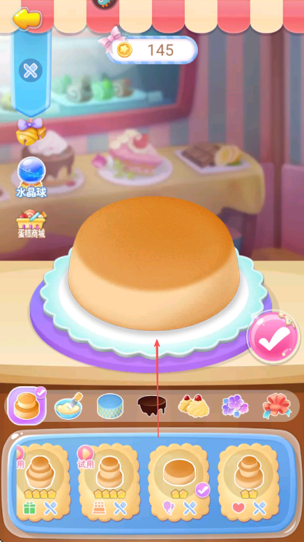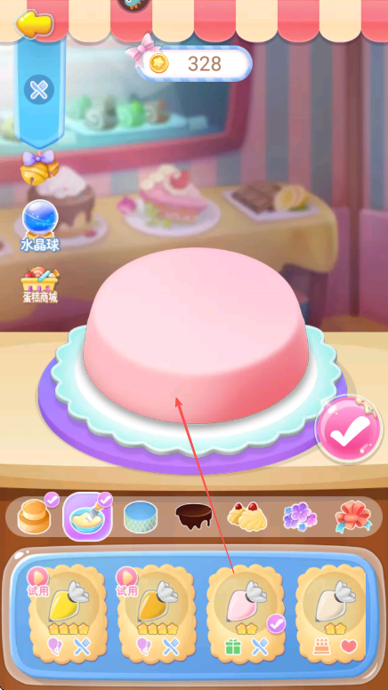 4、完成裝飾后,點擊右下角粉色對勾按鈕,確認(rèn)制作的魔法蛋糕。