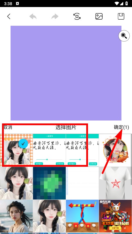 3、選擇想要進(jìn)行繪畫的圖片,點(diǎn)擊確定按鈕,進(jìn)入繪畫編輯頁面。