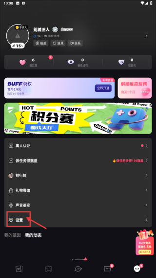 2、在個(gè)人中心,點(diǎn)擊設(shè)置選項(xiàng),進(jìn)入設(shè)置界面。