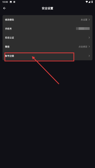 4、在安全設(shè)置頁(yè)面,點(diǎn)擊賬號(hào)注銷選項(xiàng),發(fā)起賬號(hào)注銷操作。