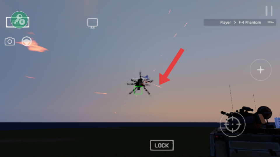 2、鎖定并攻擊空中的F-4 Phantom戰(zhàn)機(jī),擊中后產(chǎn)生爆炸特效,消滅戰(zhàn)機(jī)可積累分?jǐn)?shù),提升坦克戰(zhàn)斗成果。
