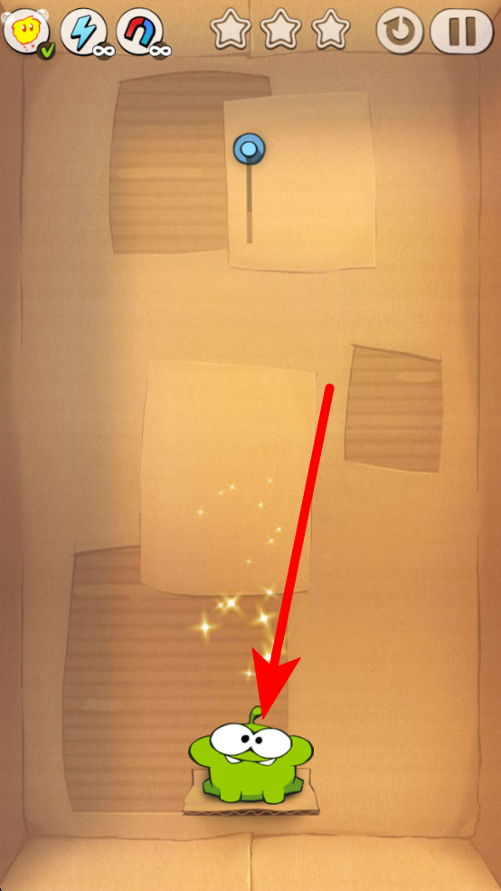 2、在糖果下落過程中,要確保它能順利落到小怪獸嘴里,若成功,會(huì)有特效反饋,還能推進(jìn)關(guān)卡進(jìn)程,同時(shí)獲得相應(yīng)的星級(jí)評(píng)價(jià)。