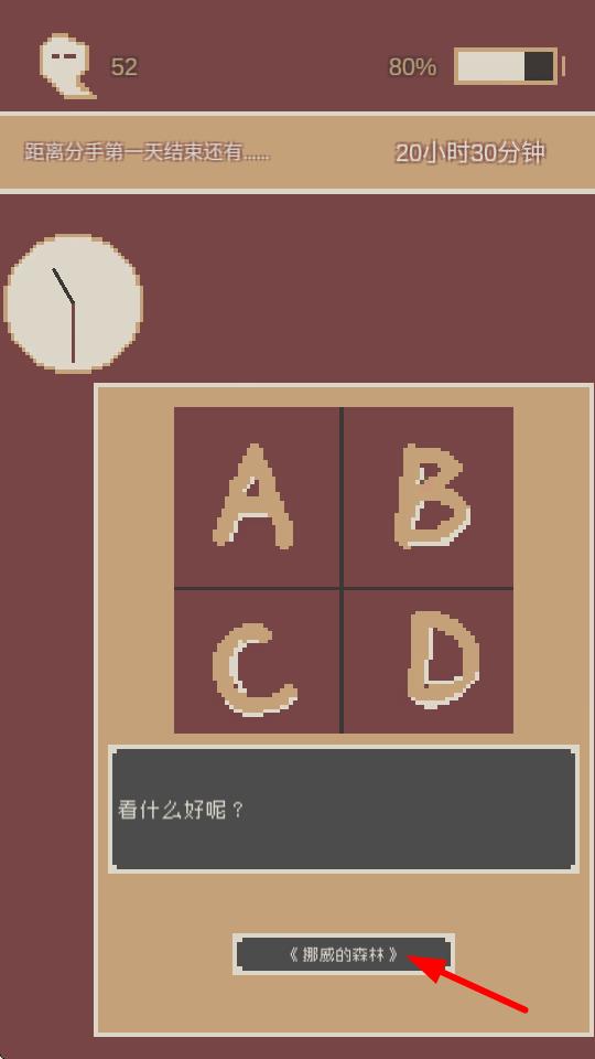 1、在像素風(fēng)格的敘事游戲中,面對(duì)要找一部電影看嗎的選擇,點(diǎn)擊看看看可觸發(fā)后續(xù)電影選擇劇情。