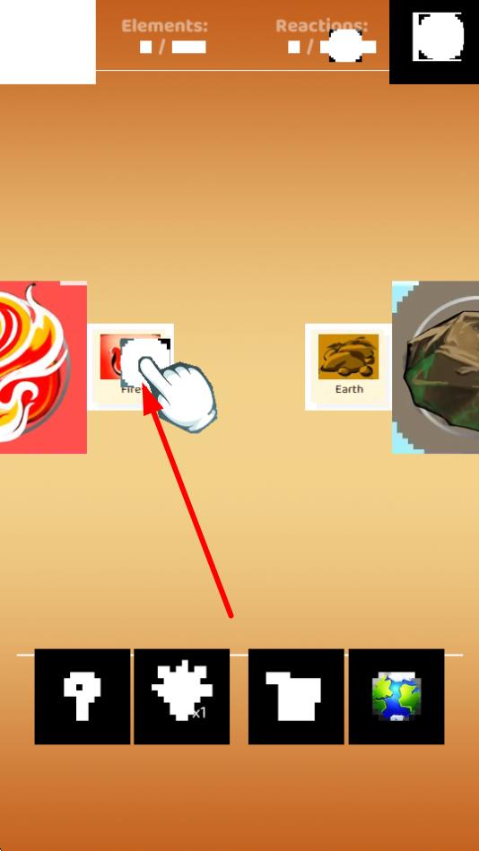 1、基礎(chǔ)元素合成操作:打開兩個包含不同元素的分組,將其中一個分組移動到另一個分組中,觸發(fā)元素融合,如土和火產(chǎn)生巖漿,土和風(fēng)創(chuàng)造塵土,通過操作積累元素。