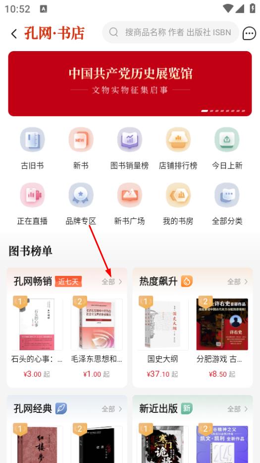 2、在孔網(wǎng)書店頁面,點擊孔網(wǎng)暢銷后的全部,進入孔網(wǎng)暢銷榜頁面。