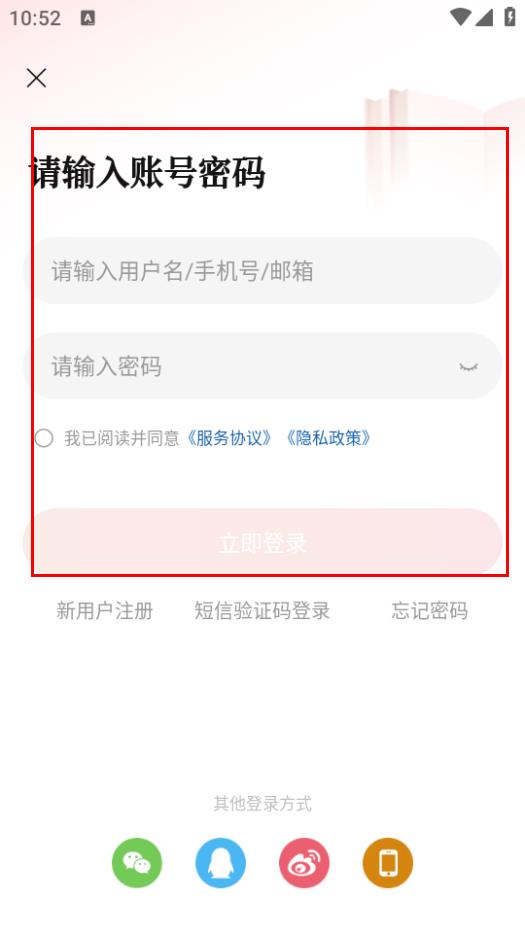 4、在登錄頁面,輸入信息勾選協(xié)議后點擊立即登錄,進行書籍購買操作。