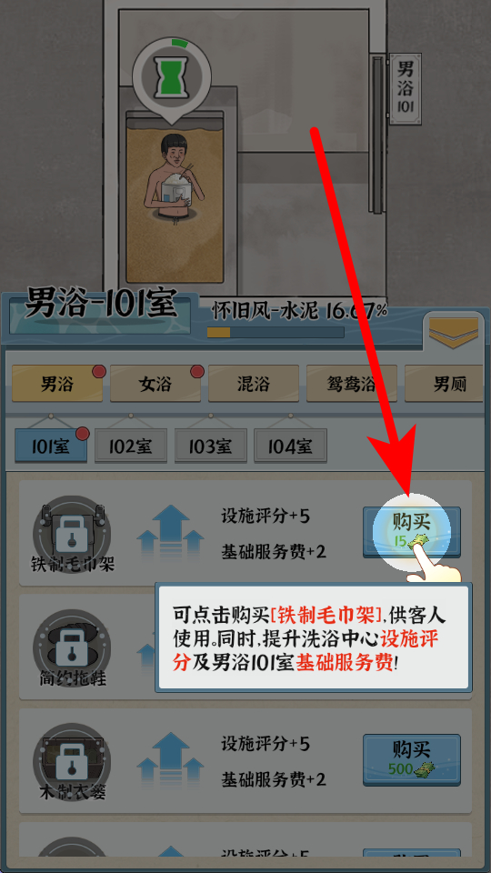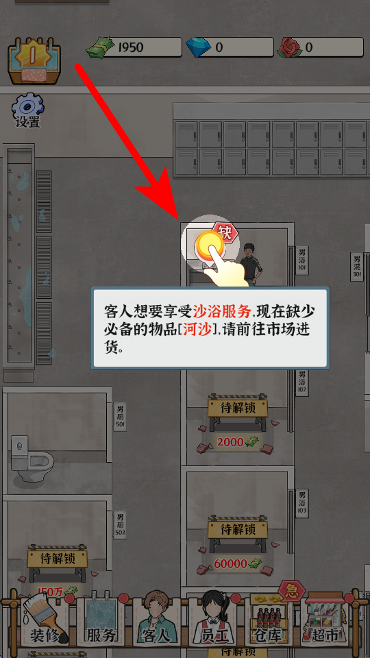 3、要關(guān)注浴場(chǎng)的資金等情況,通過(guò)為客人提供各類洗浴服務(wù)、提升設(shè)施等方式,獲取收益,用收益可以進(jìn)一步完善浴場(chǎng)的各類設(shè)施和服務(wù),吸引更多客人前來(lái)。
