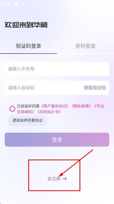 3、在登錄頁(yè)面,點(diǎn)擊去注冊(cè),進(jìn)入注冊(cè)頁(yè)面。