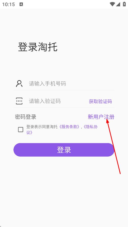2、在登錄淘托頁面,點擊新用戶注冊,進入注冊賬號頁面。