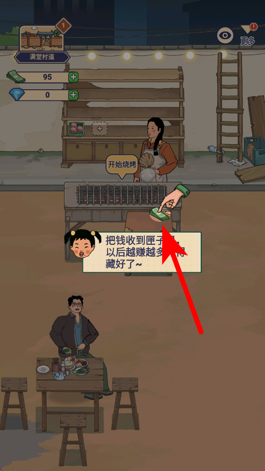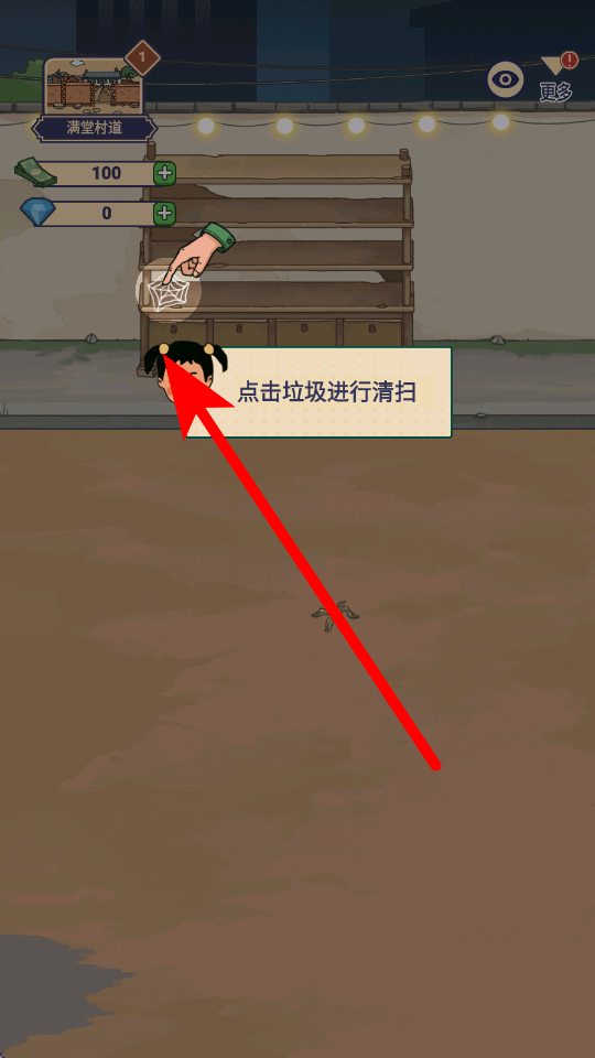 1、游戲開始后,攤位若有垃圾,比如出現(xiàn)的蜘蛛網(wǎng)等,要按照提示點擊垃圾進行清掃,保持攤位整潔,這樣能給顧客更好的用餐環(huán)境,吸引更多人前來。