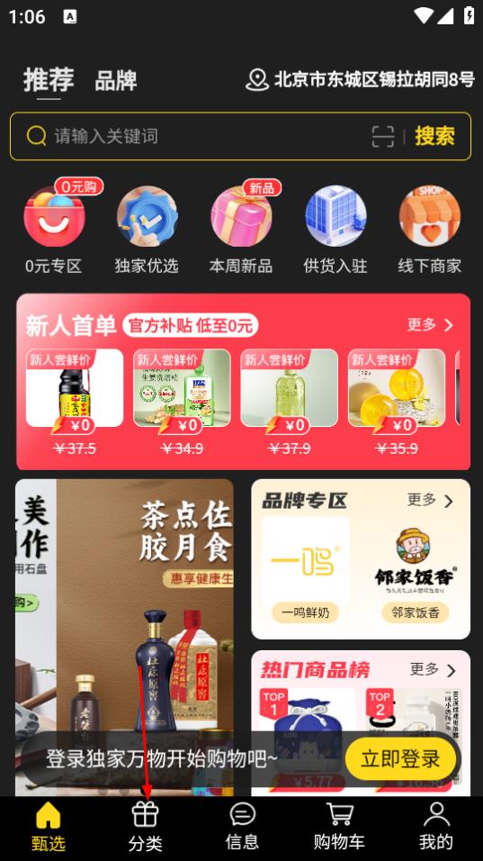 1、在獨家萬物首頁點擊底部分類按鈕,進入全部分類頁面。