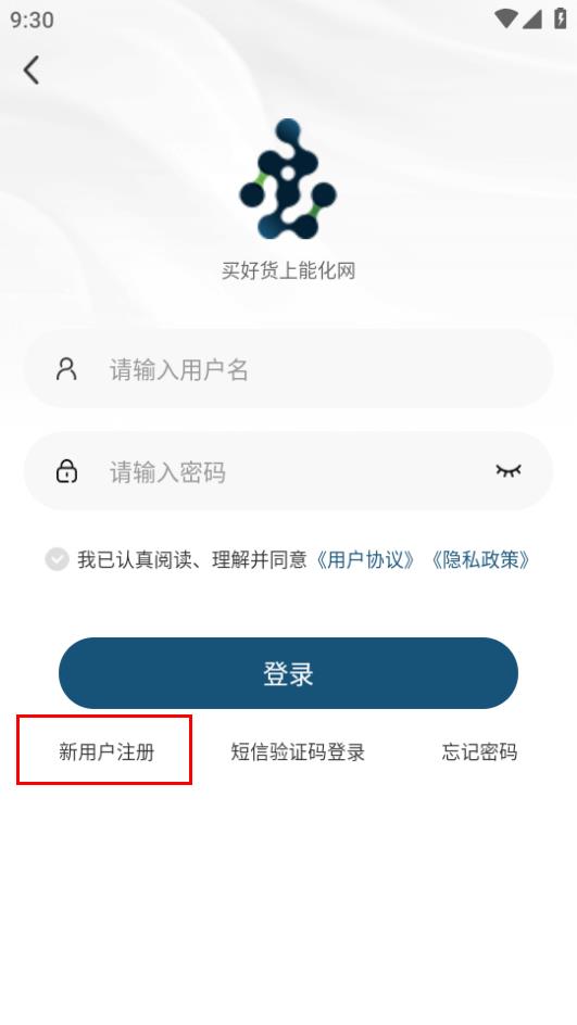 3、進入登錄界面后,若為新用戶,可點擊新用戶注冊。