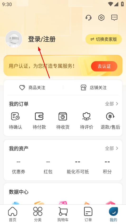 2、在我的頁面,點擊登錄注冊,即可進入登錄或注冊界面。