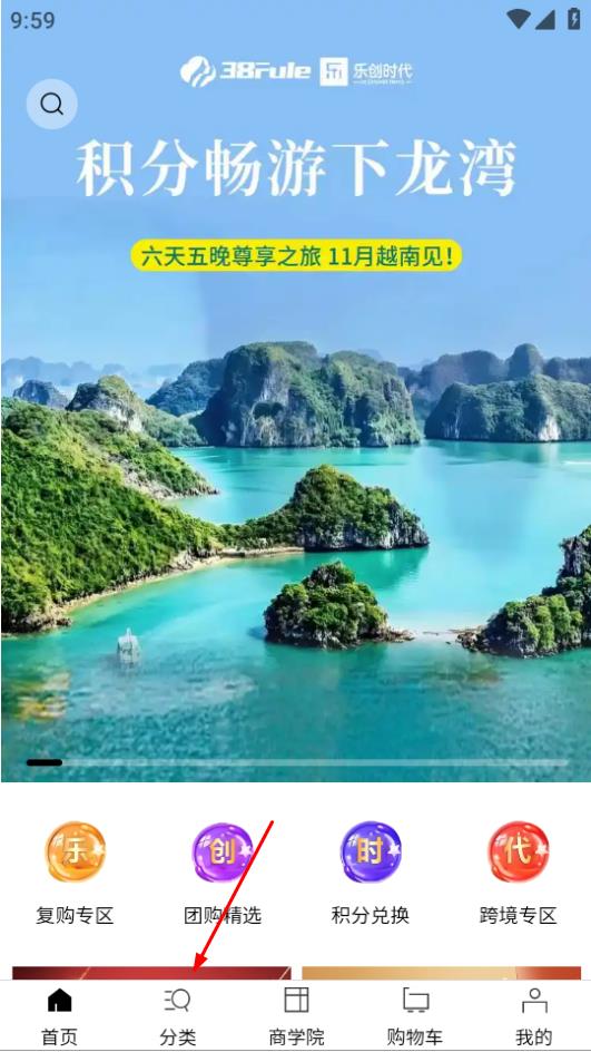 1、進入軟件首頁,若想查看各類分區(qū),可點擊頁面下方的分類按鈕。