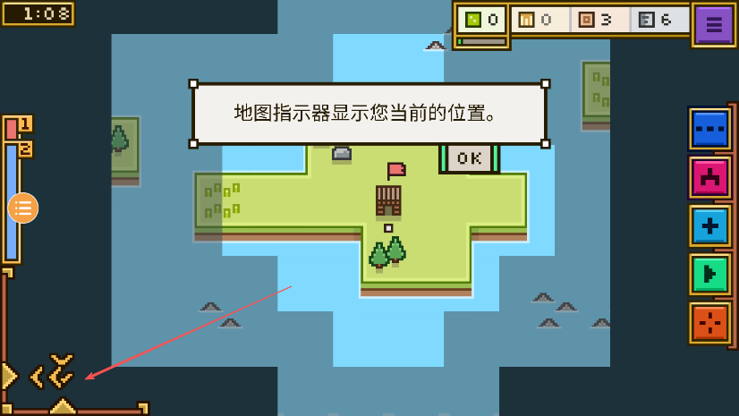3、操控角色向箭頭方向移動(dòng),探索島嶼上的不同區(qū)域。