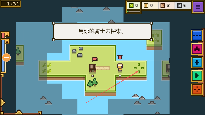 4、遵循提示用你的騎士去探索,指揮騎士探索獲取資源和信息。