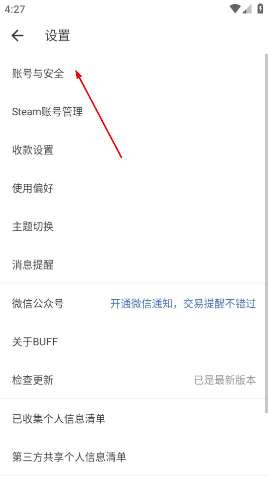 3、在設置界面,點擊賬號與安全選項進入頁面。