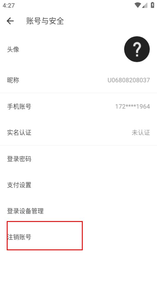 4、在賬號與安全頁面,可找到注銷賬號選項進行相關操作。