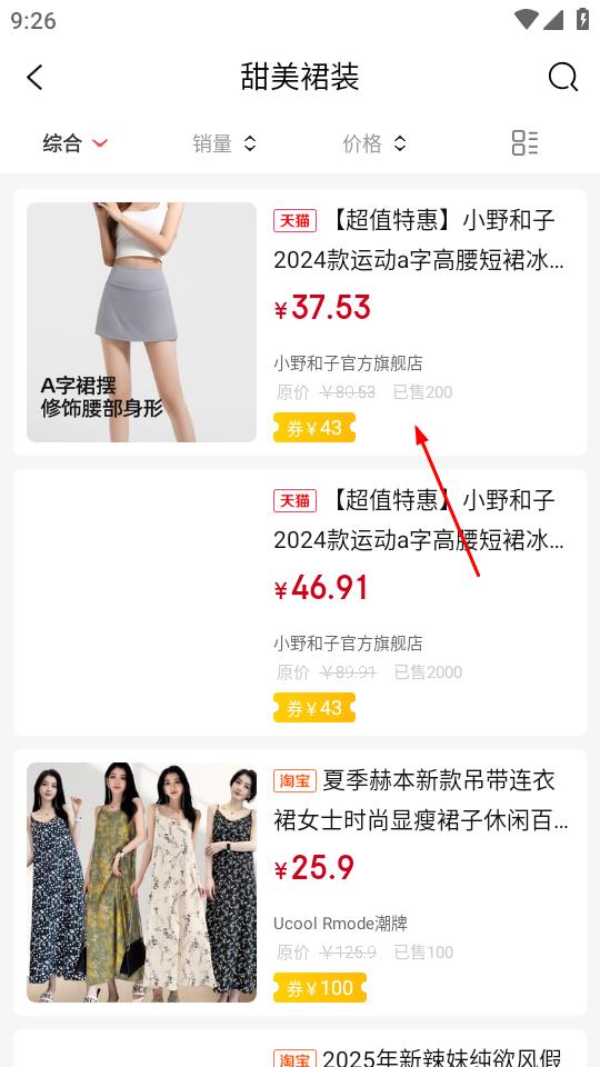 3、在甜美裙裝商品列表中,選擇心儀的商品并點(diǎn)擊進(jìn)入詳情頁。