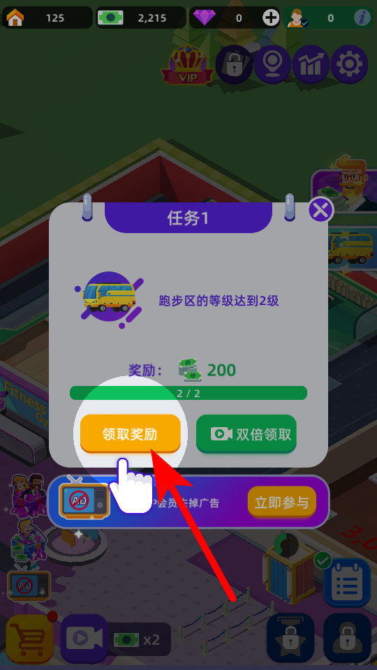 3、完成跑步區(qū)的等級(jí)達(dá)到兩級(jí)任務(wù)后,點(diǎn)擊領(lǐng)取獎(jiǎng)勵(lì)按鈕,獲取兩百獎(jiǎng)勵(lì)。