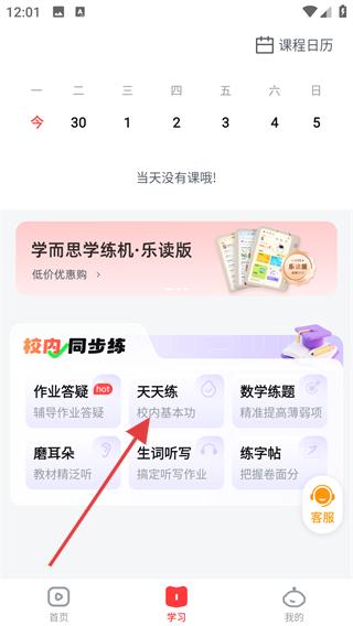 2、在學(xué)習(xí)頁(yè)面,點(diǎn)擊天天練,進(jìn)入天天練頁(yè)面。