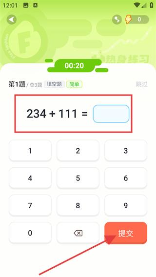 4、在答題頁(yè)面,完成題目計(jì)算后,點(diǎn)擊提交,提交答案。
