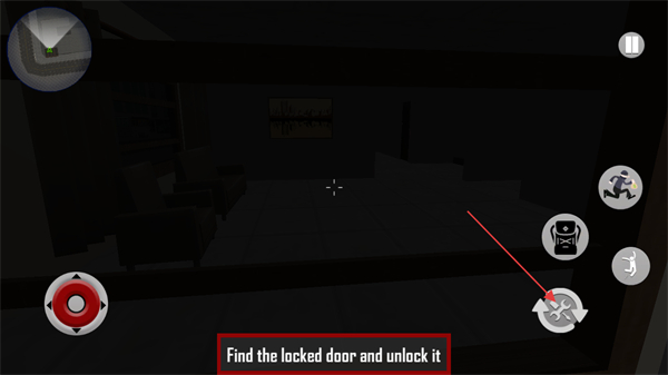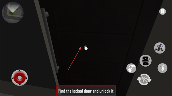 2、看到提示Find the locked door and unlock it后,找到有手形標識的鎖著的門并點擊互動。