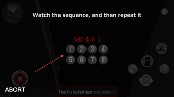 3、遇到密碼解鎖提示Watch the sequence,and then repeat it,記住數字順序后按順序點擊數字解鎖。