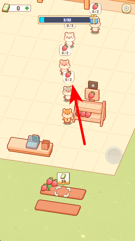 3、留意排隊(duì)的顧客及其頭頂?shù)牟葺枨髽?biāo)識(shí),根據(jù)標(biāo)識(shí)準(zhǔn)備相應(yīng)數(shù)量的草莓,滿足顧客需求。