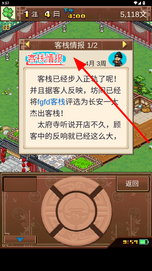 4、經營過程中,還會收到客棧情報,從中可了解客棧的發(fā)展狀況以及客人的反饋等信息,根據這些情報,能更好地調整經營策略。