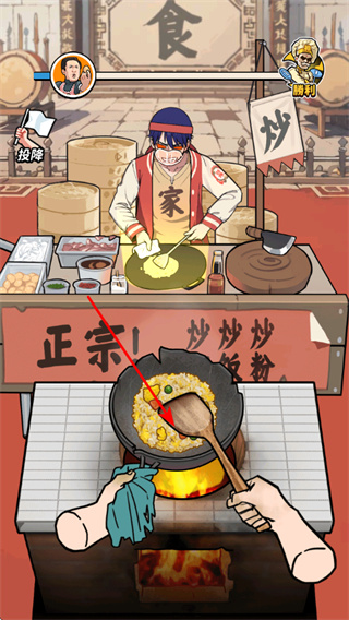 3、在烹飪的環(huán)節(jié),點擊屏幕,用木勺翻炒鍋中的食物,模擬真實烹飪操作,確保食物制作順利。