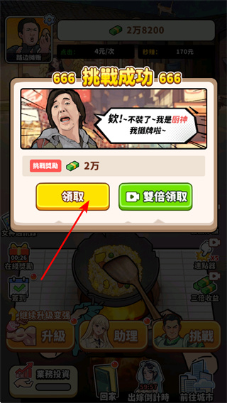 4、挑戰(zhàn)成功后,點擊領(lǐng)取的按鈕,可以獲得挑戰(zhàn)的獎勵,積累資源用于后續(xù)的游戲發(fā)展。