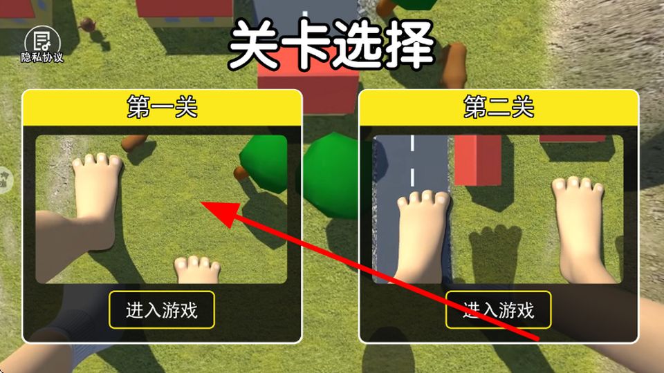 1、首先進(jìn)入游戲,在關(guān)卡選擇界面,點(diǎn)擊第一關(guān)或第二關(guān)下方的進(jìn)入按鈕,挑選想要挑戰(zhàn)的關(guān)卡,開啟游戲進(jìn)程。