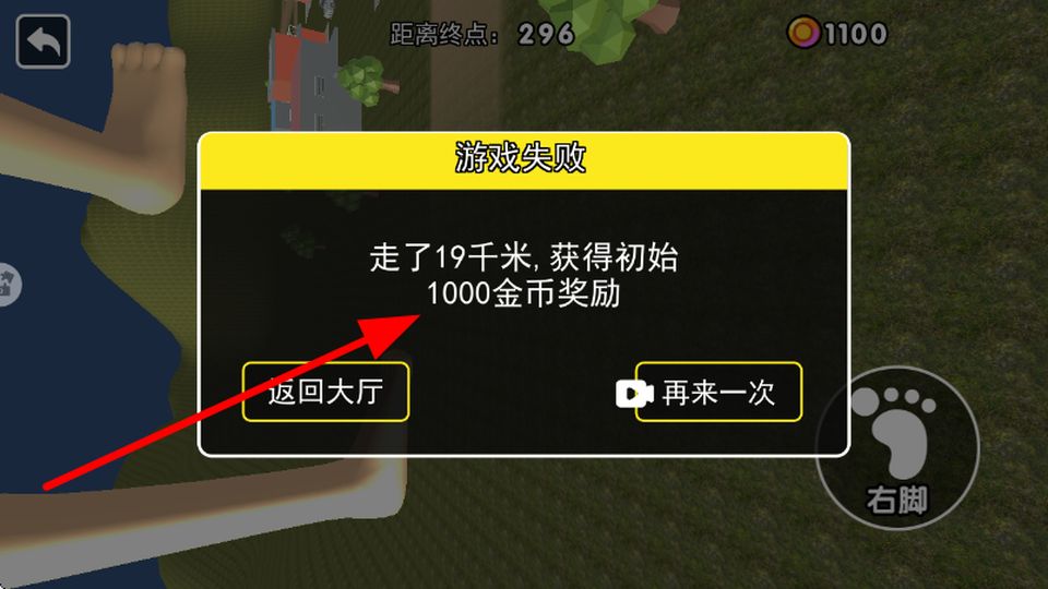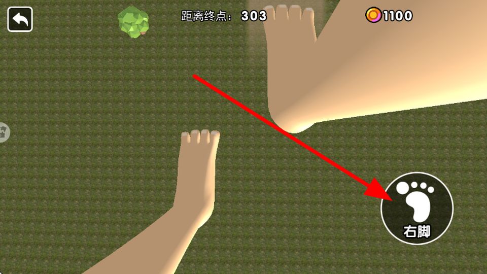 2、進(jìn)入關(guān)卡后,會顯示距離終點(diǎn)的距離,點(diǎn)擊右腳按鈕,控制右腳向前移動,邁出前進(jìn)的步伐,逐步靠近終點(diǎn)。