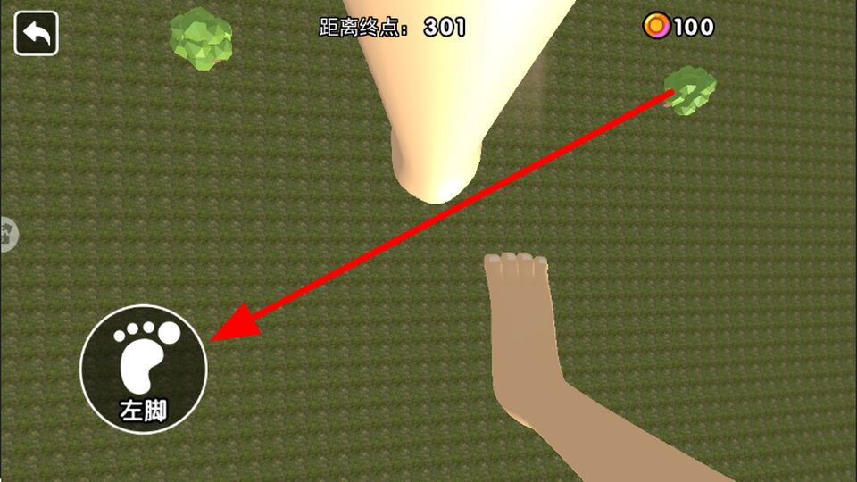 3、接著點(diǎn)擊左腳按鈕,操控左腳移動,與右腳配合,保持行進(jìn)節(jié)奏,持續(xù)向終點(diǎn)方向前進(jìn),留意場景中物品,盡量獲取。